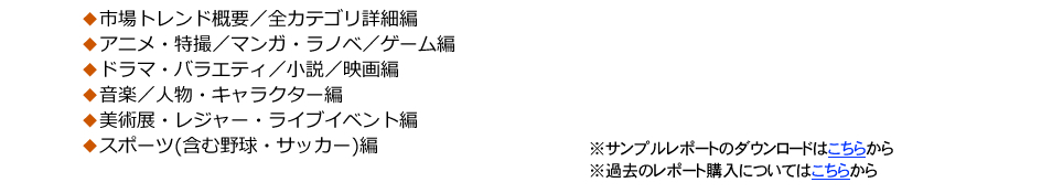 リストよりご希望のレポートをお選びください。なお、レポートにつきましては、お支払いが確認できましたのち、PDFデータでのご提供となりますので、ご了承ください。